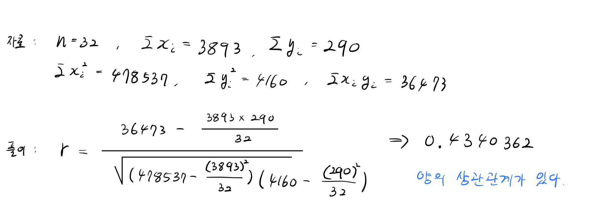 · 표본 상관계수 r의 공식