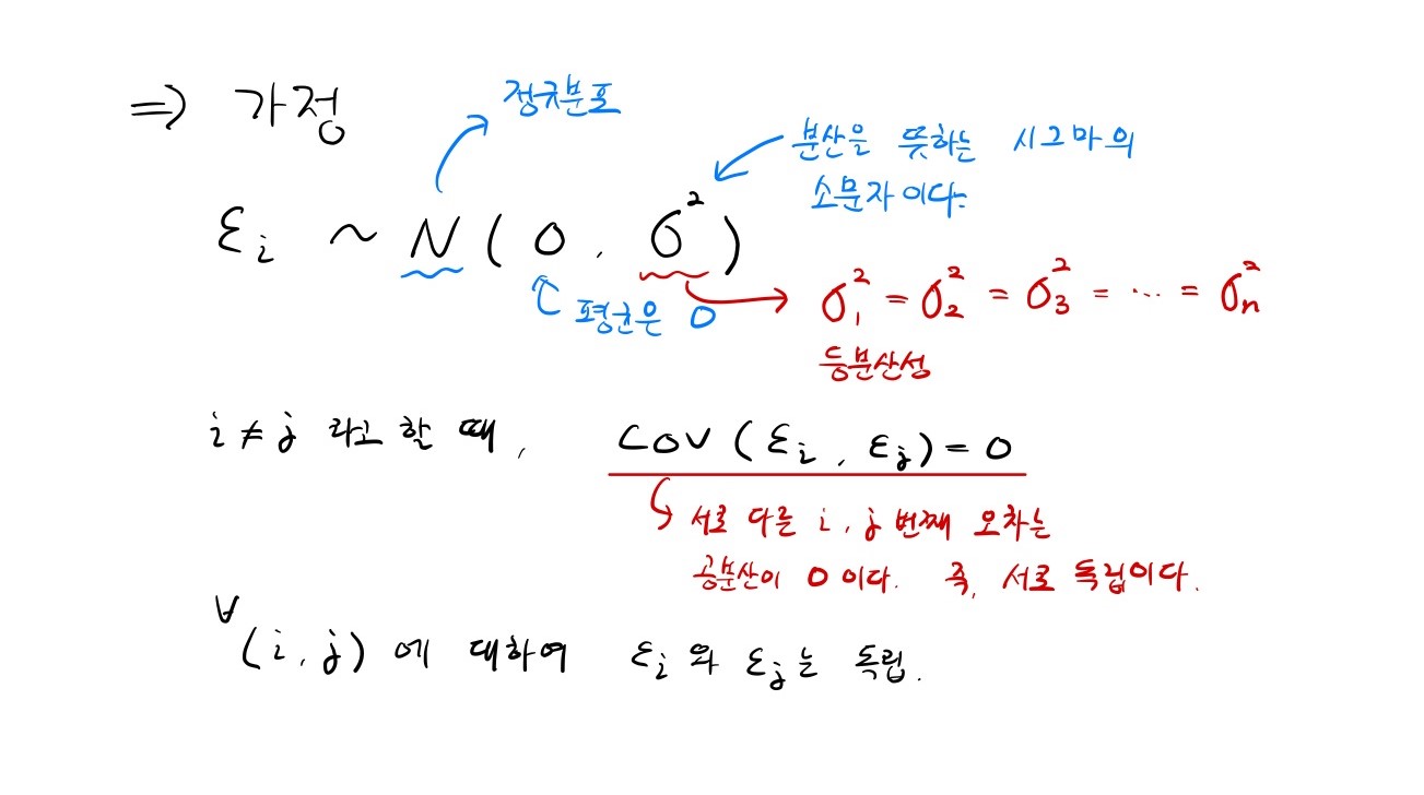(4) 독립성 : εi들은 서로 독립이다. (i 번째 ε)