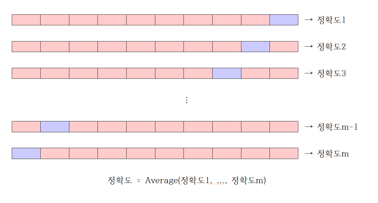 반복은 100번 또는 500번 또는 1000번 등 진행할 수 있고, 검정 오차의 평균을 계산한다.