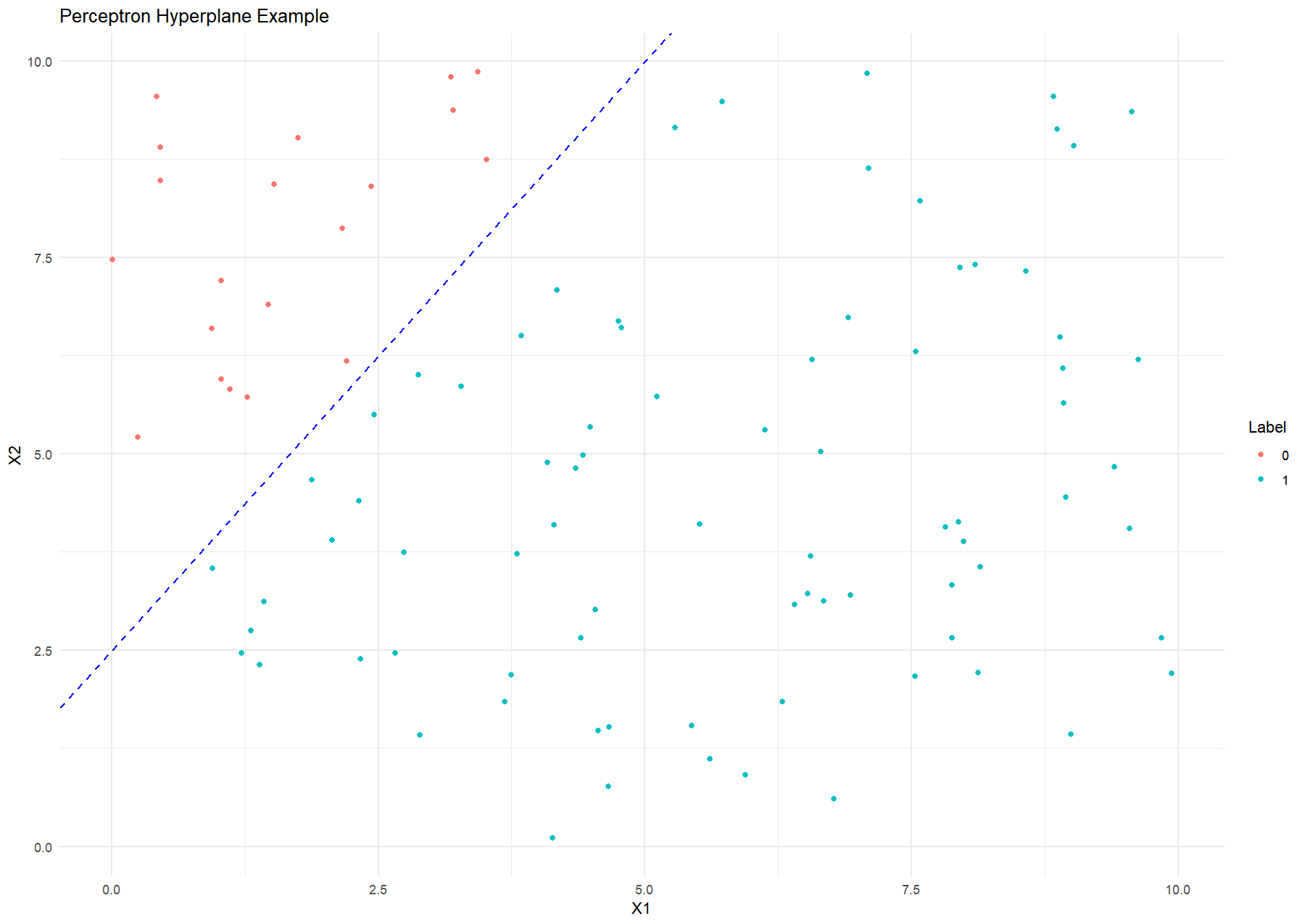 즉, 초평면은 학습 과정에서 가중치와 편향을 조절하여 분류를 결정하는 경계선이 되고, 퍼셉트론은 이러한 초평면을 학습하여 데이터를 분류한다.